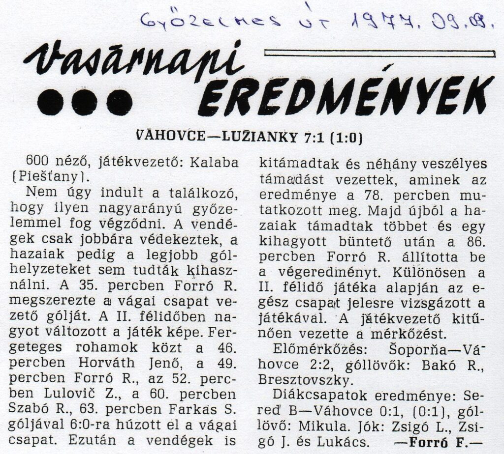 Forró Ferenc írása a Győzelmes Út c. hetilap, 1977. szeptember 9-i számában
