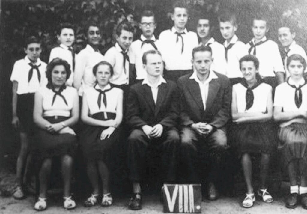Nagybalog, régi iskola udvara, tanévzáró 1961, VIII. osztály. Igazgató Gál Gyula.