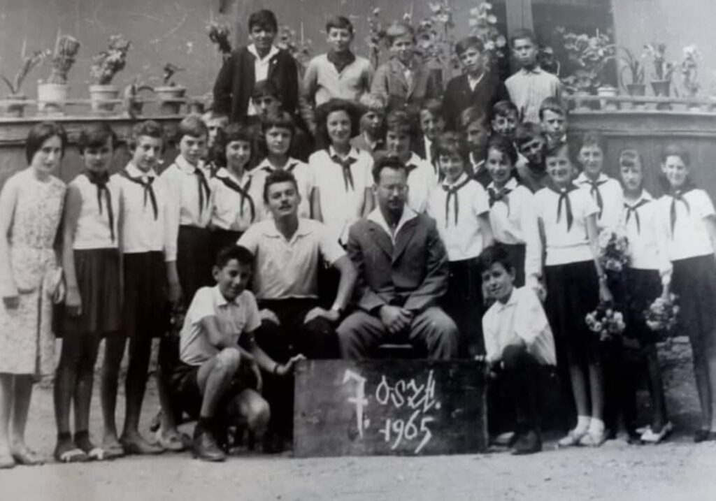 Nagybalog, tanévzáró a régi iskola udvarán,1965. Igazgató Gál Gyula, osztályfőnök Pál Dénes.