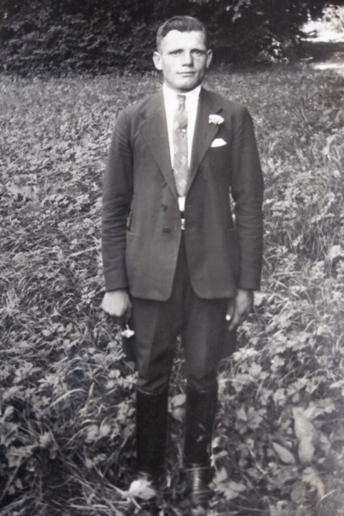 A képen a büszke, kb. 21 éves nagybalogi Vitárius András (1917-1987) látható. A fotó 1938-ban készült a Cifrakertben. És hogy miért büszke a legény? Mert a lány, aki tetszett neki, virágot tűzött a gomblyukába. Helyi szokás szerint Ibos Margit Hagymási így fejezte ki, hogy elfogadja András udvarlását.