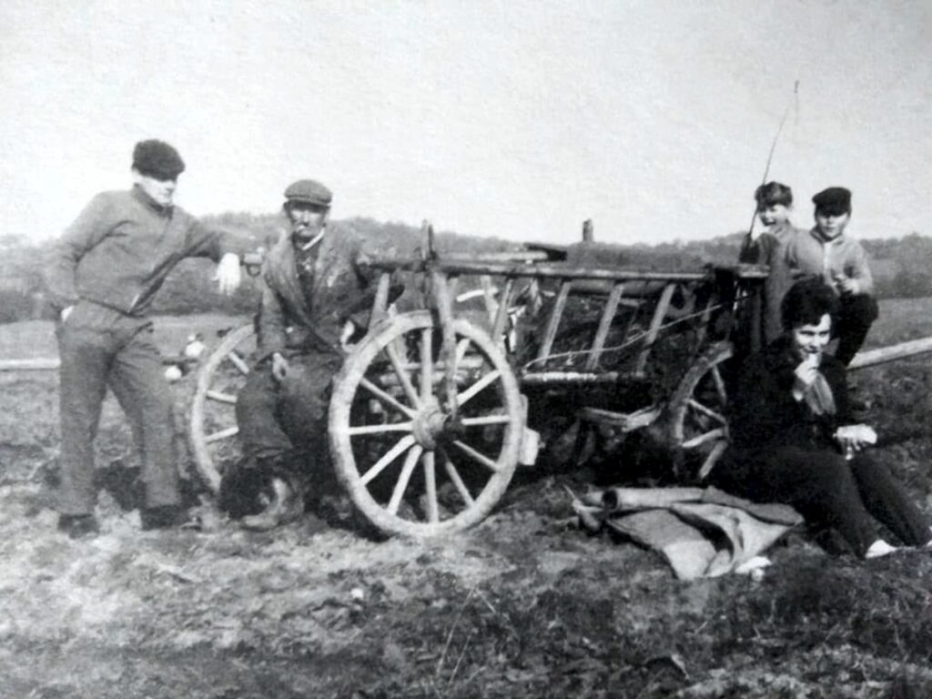 Nagybalog, iskolai brigád a szövetkezetben,1963-ban. A fotón Pál Dénes, Gesko Mihály és Jankósik Ilona.