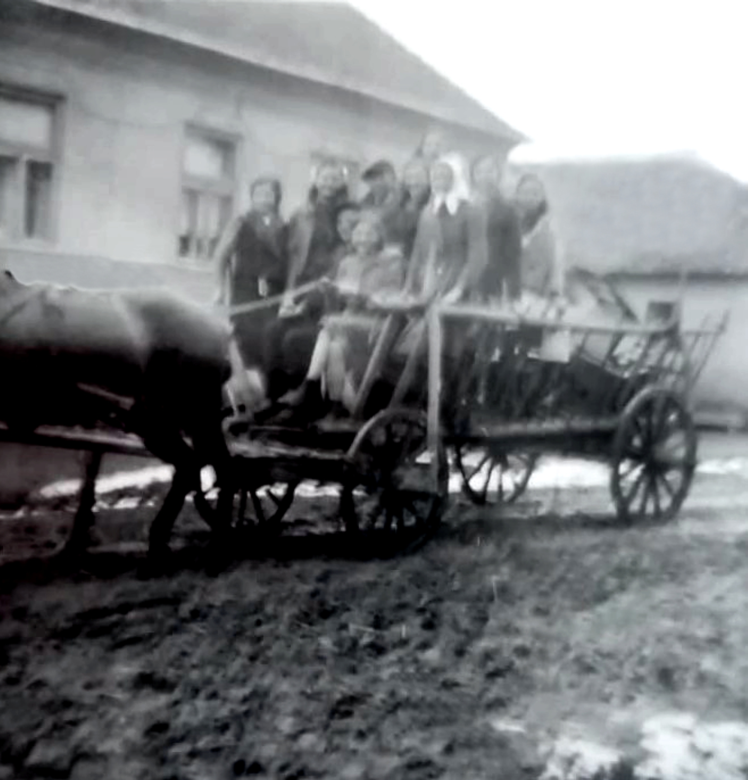 Lovaskocsi Nagybalogon – Alsóbalog kb. 1945. Pataj Tóth házuk előtt.