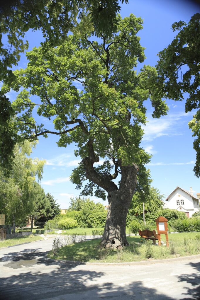 A nagymegyeri erdő szélén álló több száz éves fához történelmi mítosz kapcsolódik. Eszerint a 15. században a király személyesen jött Nagymegyerre az adófizetéssel kapcsolatban kivizsgálni a nagymegyeriek panaszait. A sátrát ennél a fánál állította fel. Itt fogadta Zsámbók Ozsváld megyeri és Végh István izsapi bírót és küldöttségét. Megígérte, hogy panaszaikat kivizsgálja, és ennek hatására 1466. december 15-én, Nagyszombatban Nagymegyer településnek a mezővárosi kiváltságot adományozott. A fotón látható fa Nagymegyer egyik jeles szimbóluma, amelyet a város címere is kifejez.