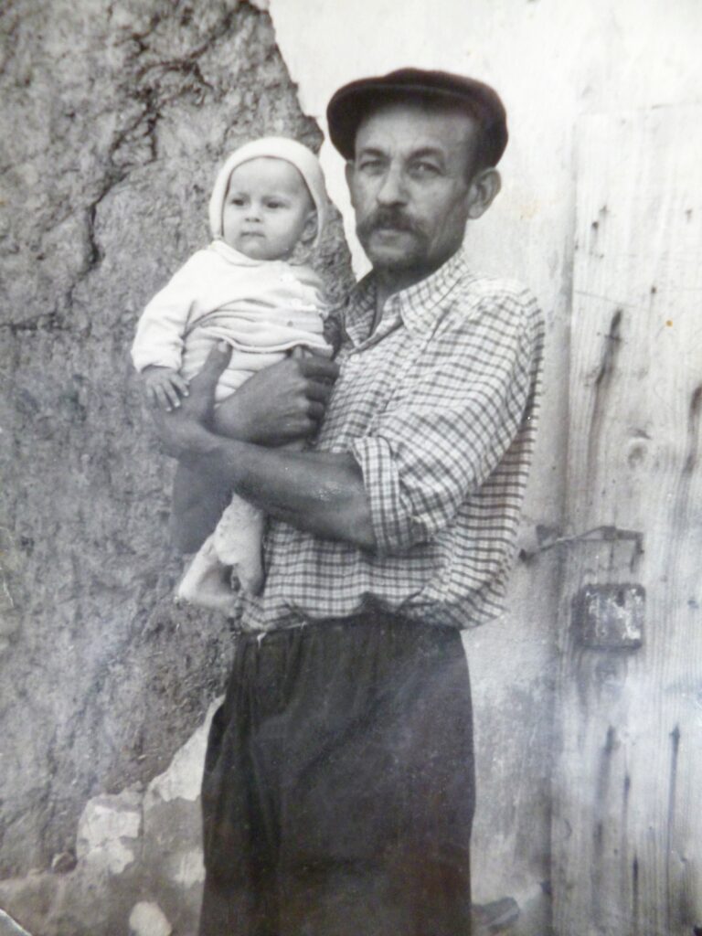 Nagypapa és kis unokája Szalkán 1954-ben, Csepreghy István és Kádek Jolán.