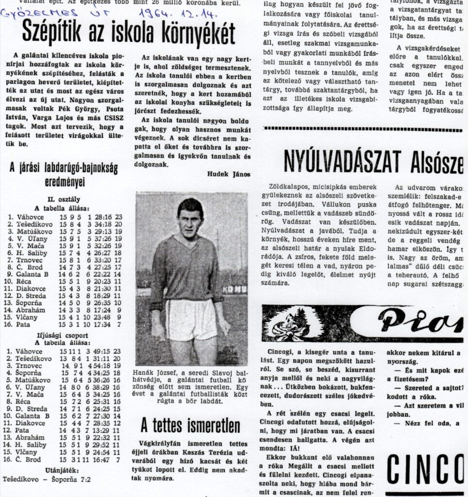 A Galántai járás labdarúgó-bajnokság eredmyényei: a Galántai járás II. osztályában az őszi bajnokként a 16 csapat közül az első helyen a vágai csapat tanyázik, s az Ifjúsági csoportban szintén a vágai labdarúgó-csapat az első.
