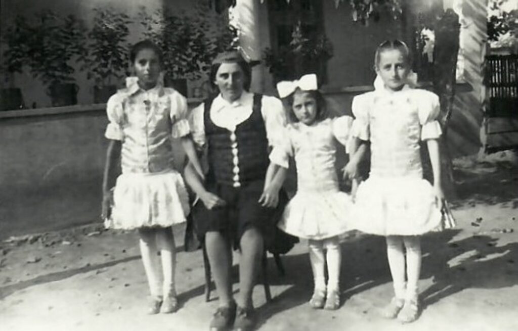 A képen özvegy Csókás Rozália látható a hadiárvákkal, Matilddal, Erzsébettel, Máriával.