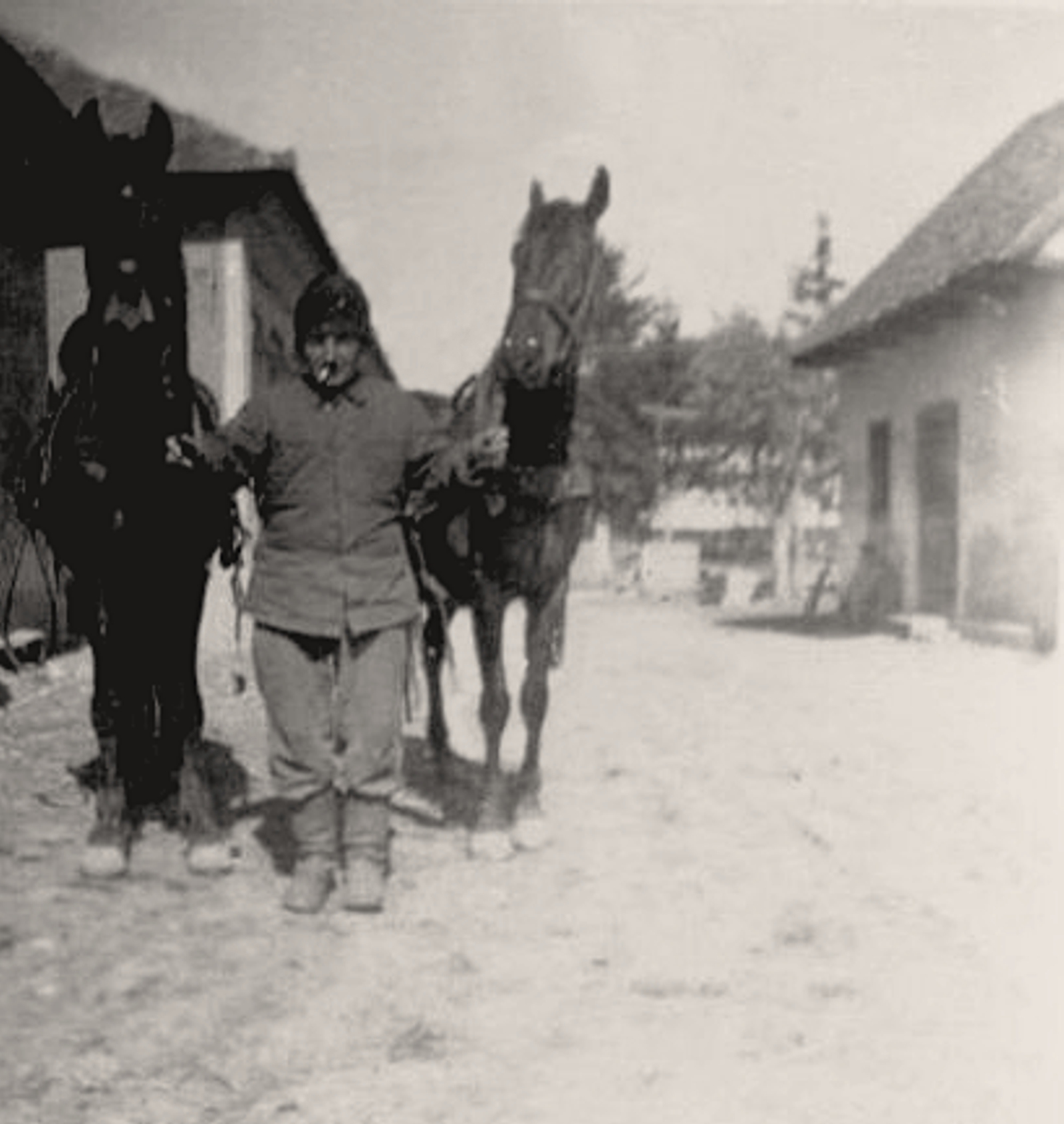 Pál Dezső lovakkal az udvaron