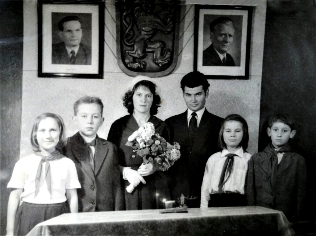 A vőlegény Póda Béla, menyasszony Fekete Magdaléna: A jobb oldali pionír Csánó Ilona, a másik pionír Németh Viola, szül. Hegedűs, a fiúk Lábodi Ferenc és Rácz Károly. Az ifjú pár nemeshodosi, még élnek. Ennyit tudott az anyukám mondani!