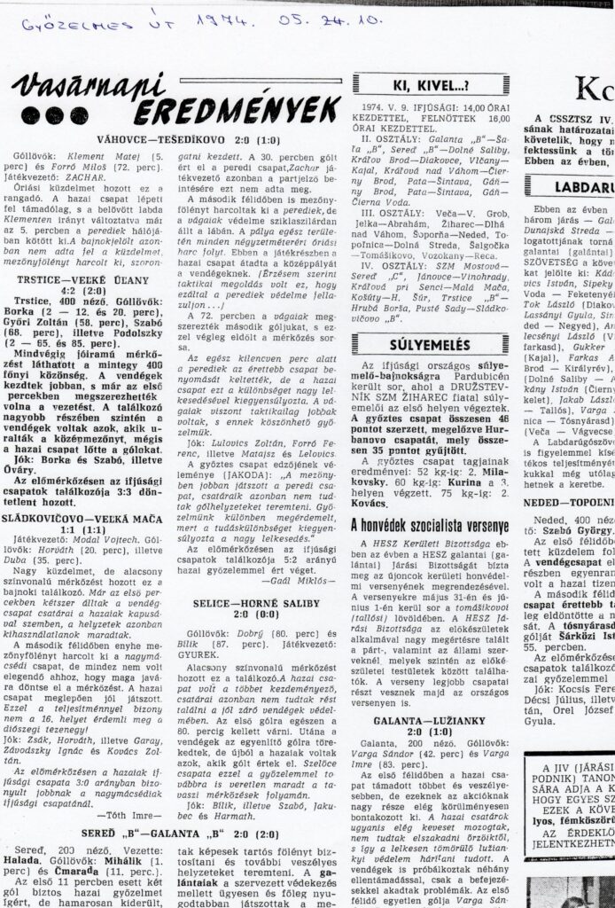 Gaál Miklós írása az 1974. május 10-én megjelenő Győzelmes Út című hetilapban: