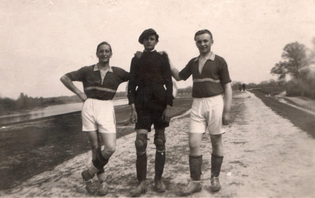 Balró jobbral: Renács Ede, az 1930-as születésű kapus, Kamenár Ferenc és Szabó János.
