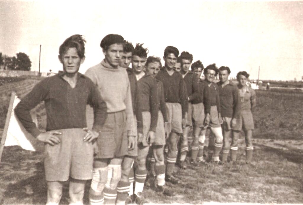 Balról: Dovalovsky Gyuri, Varga Imre, Kohút László, Bolek János, ?, Kiss Ferenc, ?, Pomichal Ignác, ?, Szili … (katolikus pap), Szabó Gyula (Boldogfa), Vrba …, (Pozsonyból járt Rétére focizni)