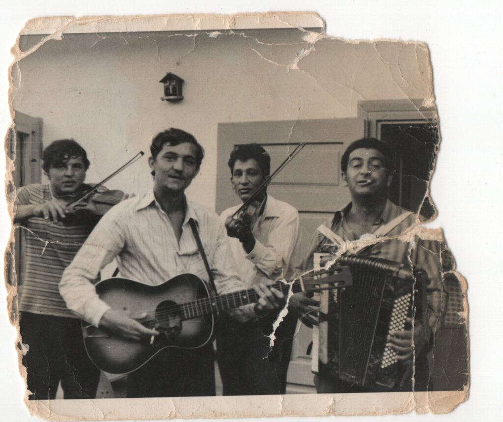 A fotón látható Alexander Farkas, akit „Léla” néven ismernek, hegedűn balra, Štefan Farkas „Litťjen” gitáron mellette, Jozef Vöroš, akit „Búdi Joži” néven ismernek, hegedűn balra, és Jozef Szendrei „Aďi” harmonikán balra.