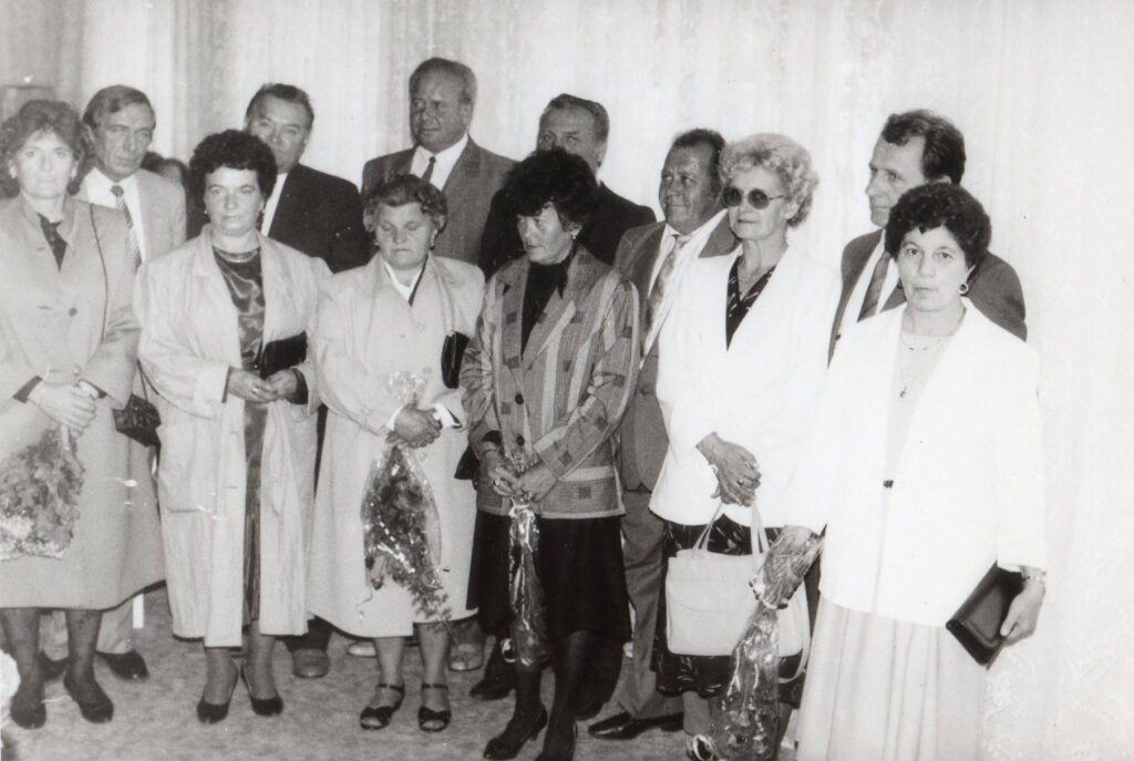 Állnak, balról jobbra: Ecseri Margit (született: Mészáros), Forró István, Kiss Jolán (született: Forró), Bakó Ernő, Somogyi Viola (született: Kotrba), Kamenár György, ?, Hanusz Ferenc, Kubica István, Kamenár Margit, Recht Miklós és a felesége, Rechtné.
