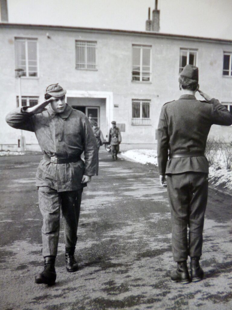 Helyes szalutálás 1968-ból, a képen ifj. Gyurcsovics József Námest nad Oslavou-ban.