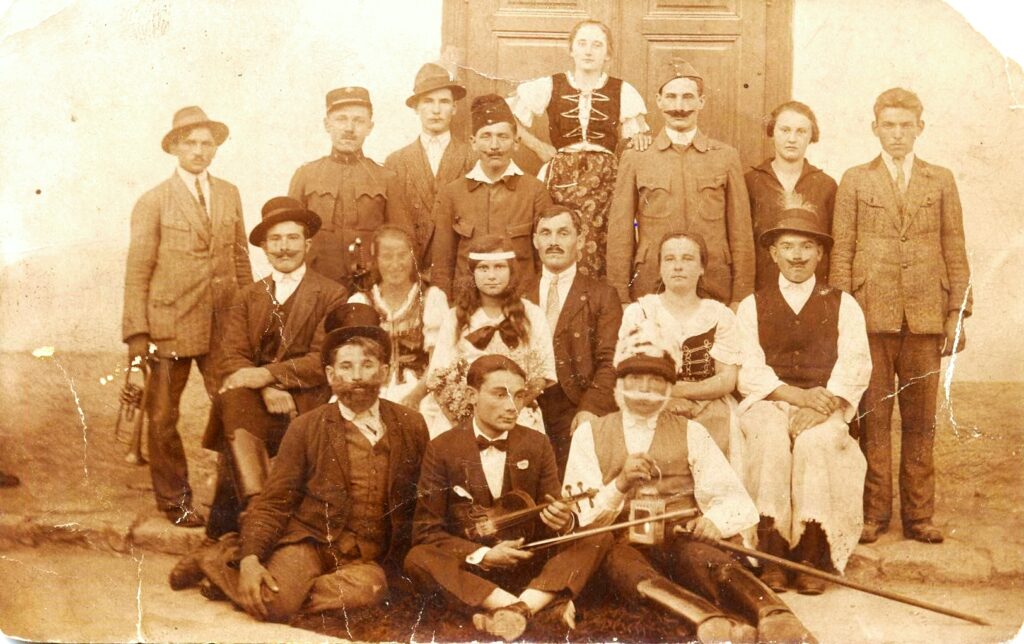 A fotó Chalupeczky Józsefnél is megtalálható volt. Feljegyzése szerint egy 1922-es fényképén egy színmű látható, de a címére már nem tudtak visszaemlékezni. A viselet alapján (első világháborús katonaruha) 1922-höz soroltam be.