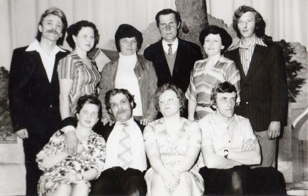 Amatőr színjátszók a községi Kultúrház színpadán, a Zabosi szakácsnők színmű gyakorlása közben.