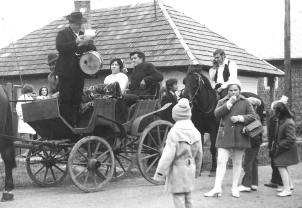 A kép az 1960-as években készült, képen egy részlet látható felvonulásból, pontosabban a bíró és bíróné, valamint a kisbíró.