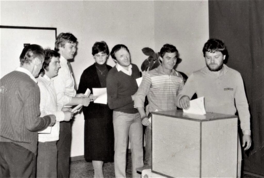 Balról jobbra: Majerník Gyula, Szabó László, Simkó Péter, Ladovics Mária (Vedrődiné), Vedrődi Gábriel, Józsa István és Vedrődi Lajos.