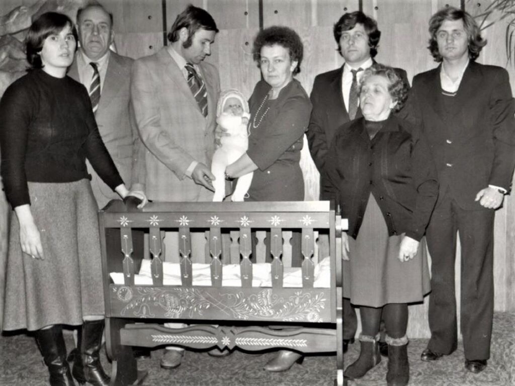 Balról jobbra: Adamkó Mária (született Barci), Adamkó Ferenc, Barci, Adamkó Krisztián (újszülött), Barciné, Adamkó Vilmos, Adamkó Jolán (született Kiss), Adamkó László.
