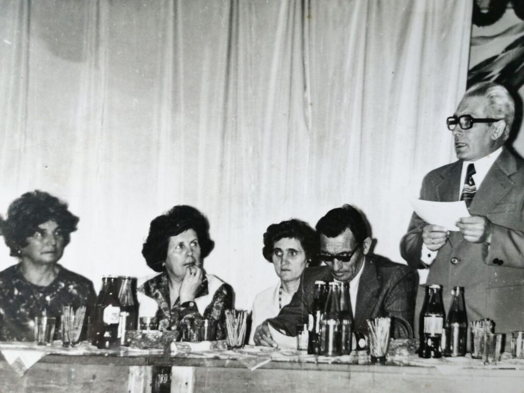 Kuczman Ilona, Menyhárt Sarolta, Écsi Bözsi néni, Hegedűs Mihály, Papp Lajos. Ez inkább gyűlés, vagy Vöröskereszt, vagy pártgyűlés, mivel a pártelnök beszél.