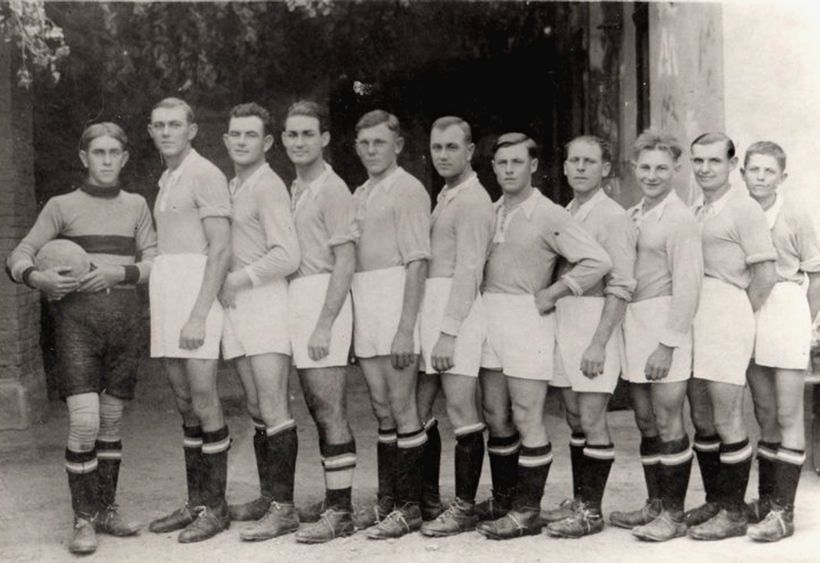 1935-ben Holub János pedagógus (balról a negyedik) volt a szervezett futball megalapítója Vágán.