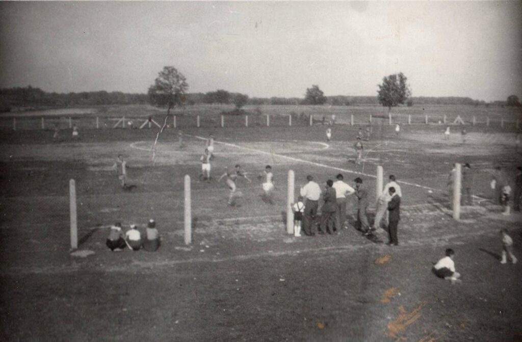 Egy régi fotó, amelyen a régi Vág-parti focipálya látható, s amelyet a folyó régi töltéséről fotózták. A töltés egyben a lelátó is volt. A Vág felőli kaput “fölső kapunak”, s a déli irányban lévőt “alsó kapunak” hívták. A fotó készítésekor még öltöző sem létezett. A játékosok 1971-ig a közeli Hulák Gyula bácsiék családi házában öltözködtek át, a Puskás Laci bácsiék családi házában mosakodtak. A fociclub pecsétnyomóját, abban az időben még krumpliból készítették…