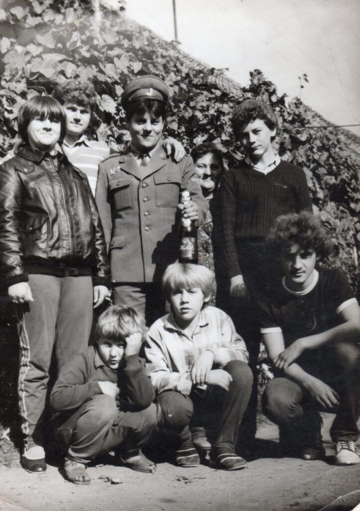 Állnak, balról jobbra: Karácsony Márta (Gyeváthné), Karácsony József, Karácsony Tibor (katona), Karácsony Anna, Patócs Milán.