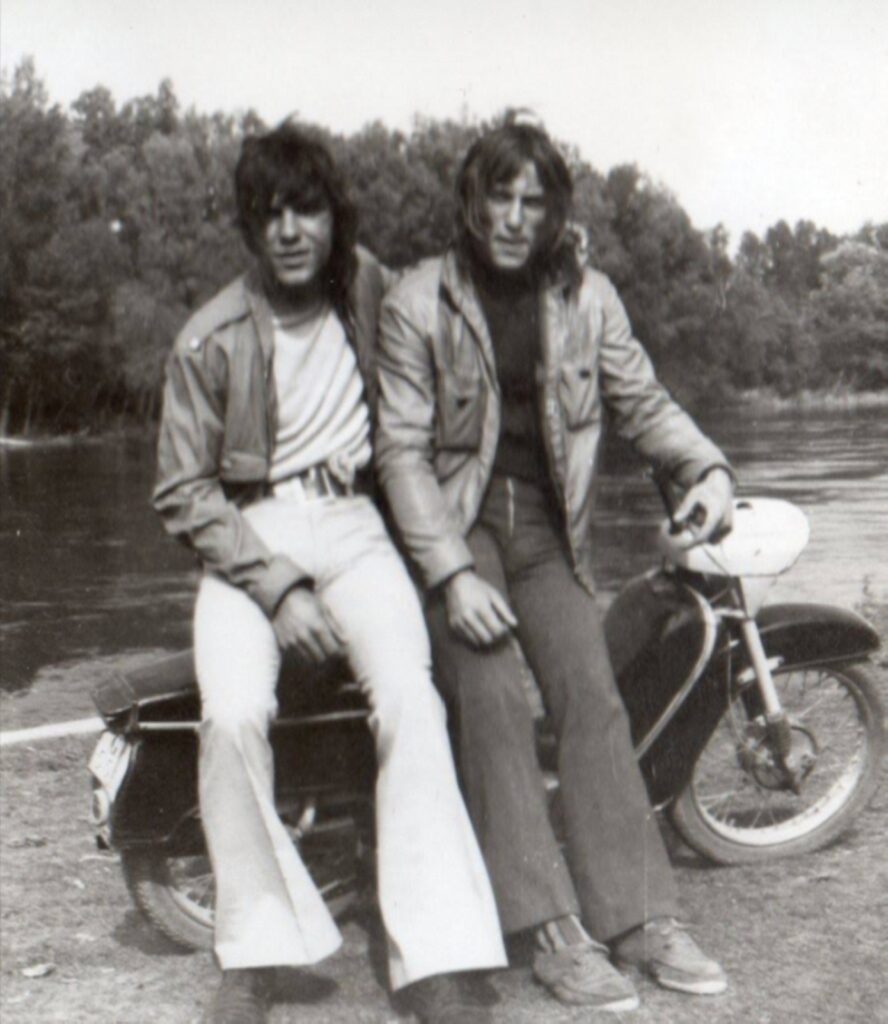 A Vág folyó mellett, a Jawa 05-ös motorbicikli kedvelői: Brestovsky Miklós (balról) és Czakó Sándor. Vagy ahogyan Vágán ismerték őket: Mikinó és Prine.