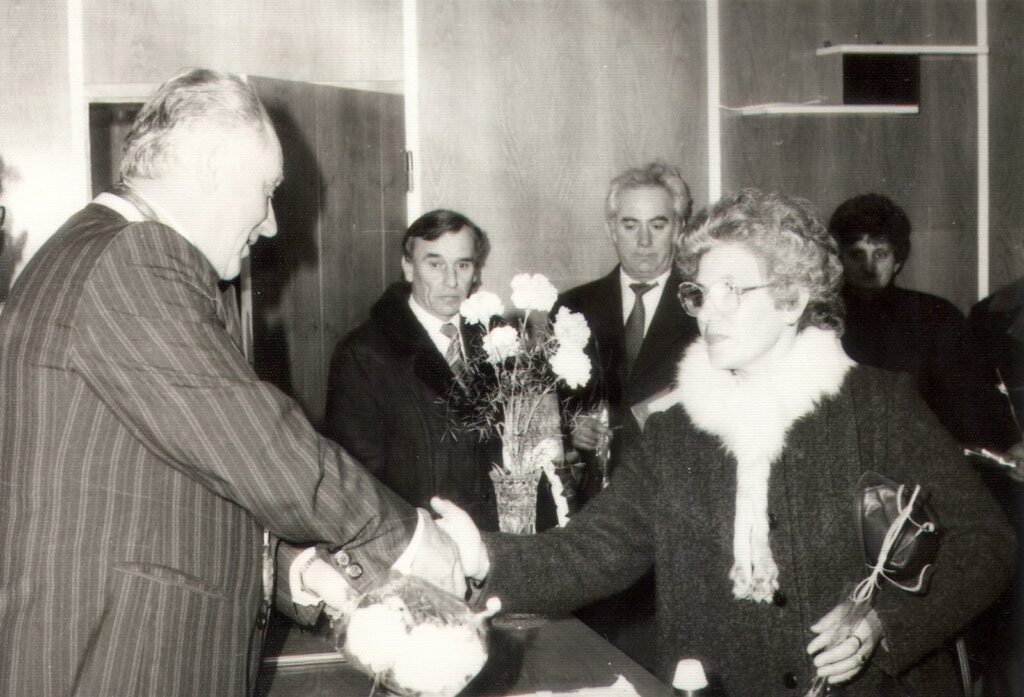 A Helyi Nemzeti Bizottság (mai Községi Hivatal) dísztermében: Szlízs László (balról), Párkány Lajos, Kubányi István, Turček Julianna (született: Forró), Lukács Irén (született:Kotrba).