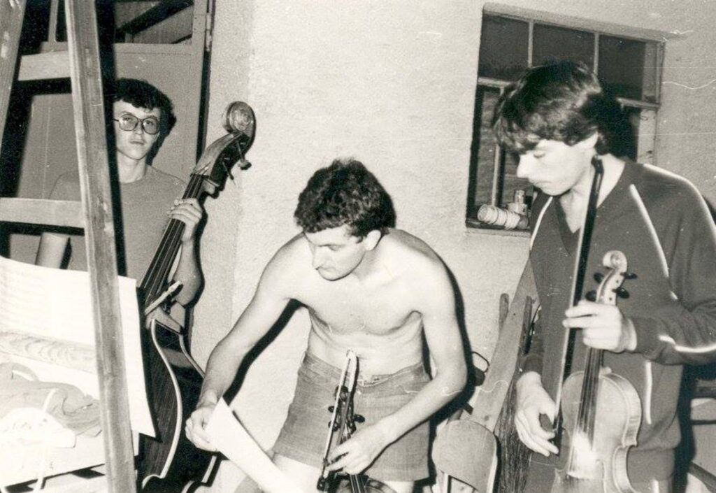 Szlízséknél, egy kis zenélés közben: Hulák Péter (bőgő), Szlízs Róbert (brácsa) és Józsa András (hegedű).