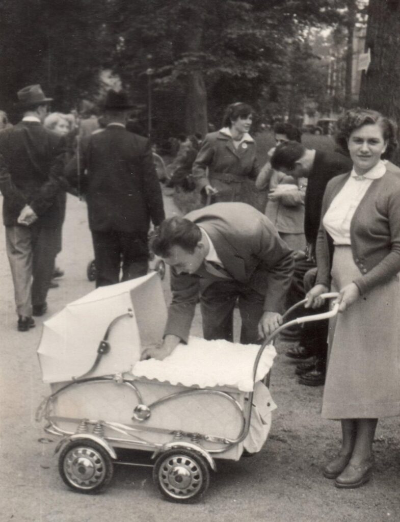 Hrabovský Pál és a felesége, Terézia, a gyerekkocsiban meg a kislányuk, Lídia.