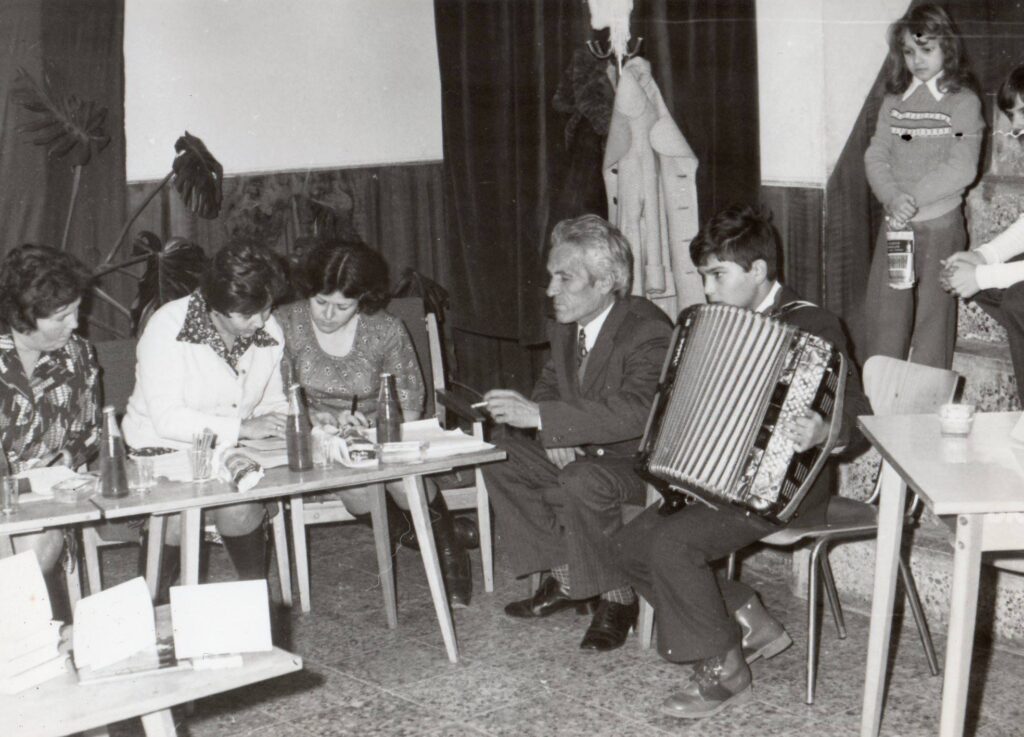 A községi kultúrház 1973-ban lett átadva a kultúra kedvelőinek. A fotó a kultúrház előcsarnokában, valamilyen vetélkedőn készült.