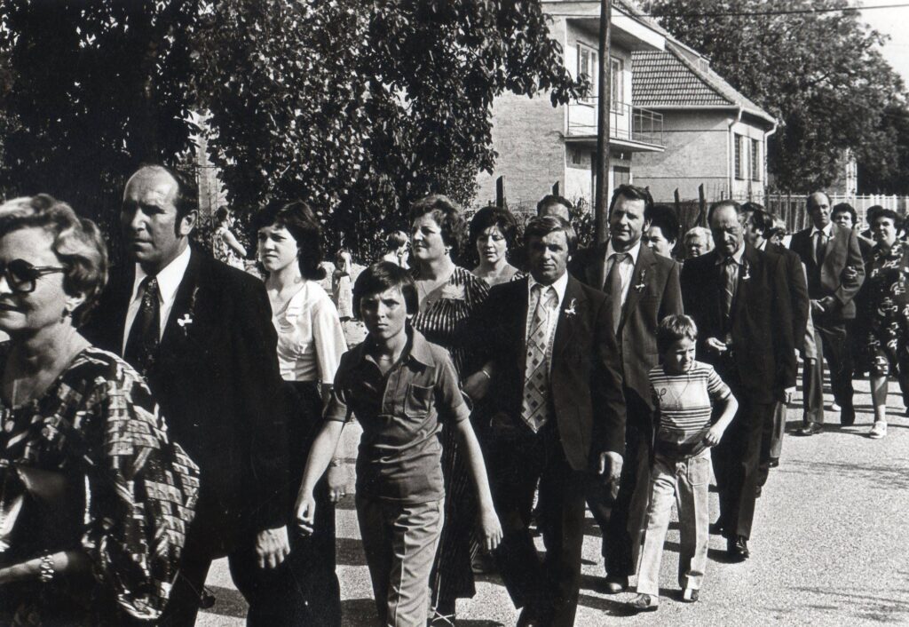 Új utcában halad, a lakodalmi menet. Simkó Imre volt a vőlegény. A sor végét cigányzenekar szokta zárni…