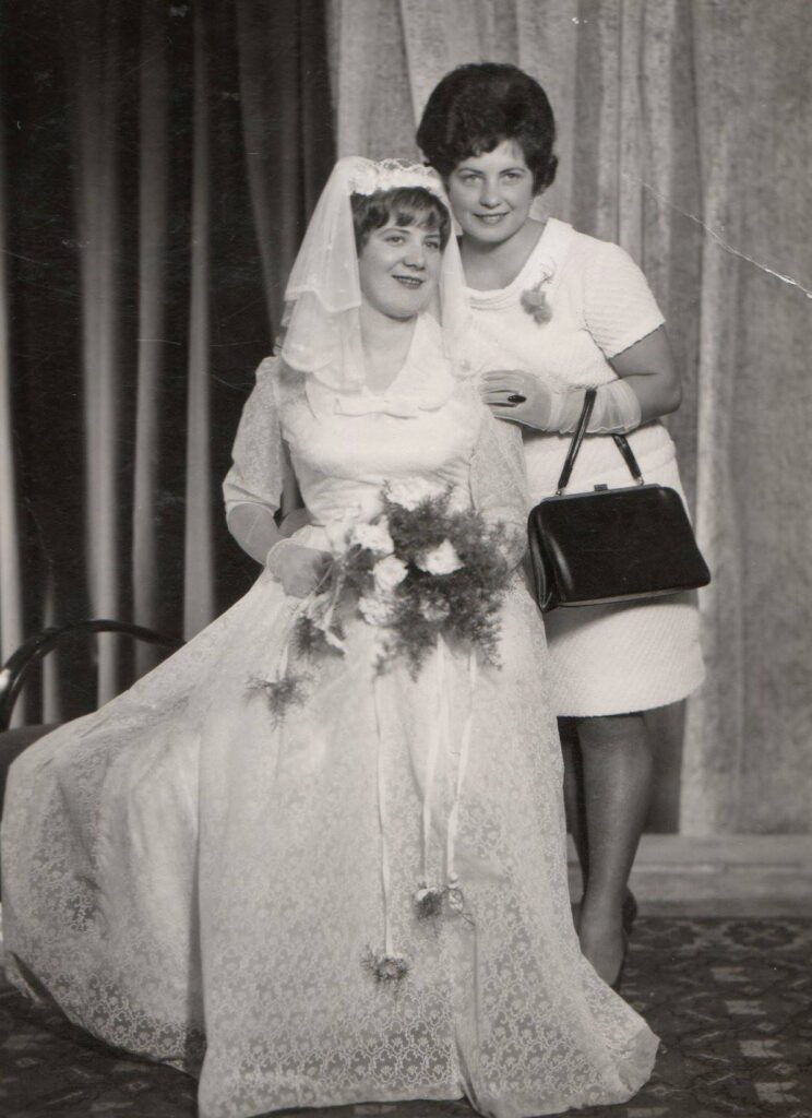 A menyasszony, Takács Julianna (született: Forró) és a komaasszony, Pulai Erzsébet (Farkasné).