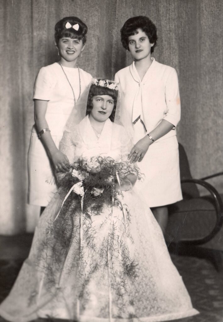 Balról jobbra: Mojzes Anna (Stankóné), Jalsovszky Julianna (született: Polakovics, a menyasszony), Kotrba Julianna (Gálné).