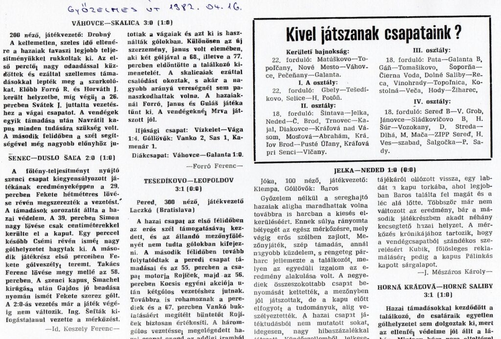 Forró Ferenc írása a Győzelmes Út című hetilap 1982. április 16-i számában