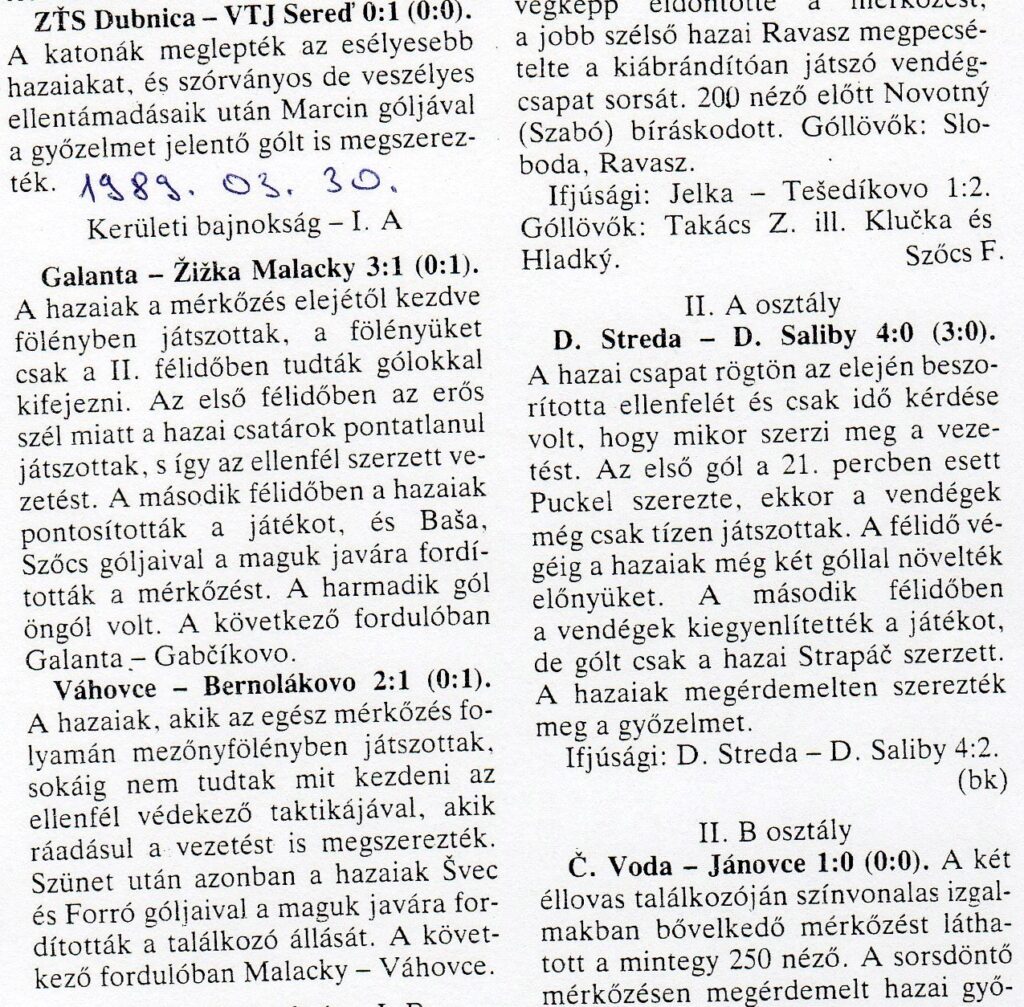 A hazai csapat gólszerzői Švec Jaroslav és Forró Róbert voltak.