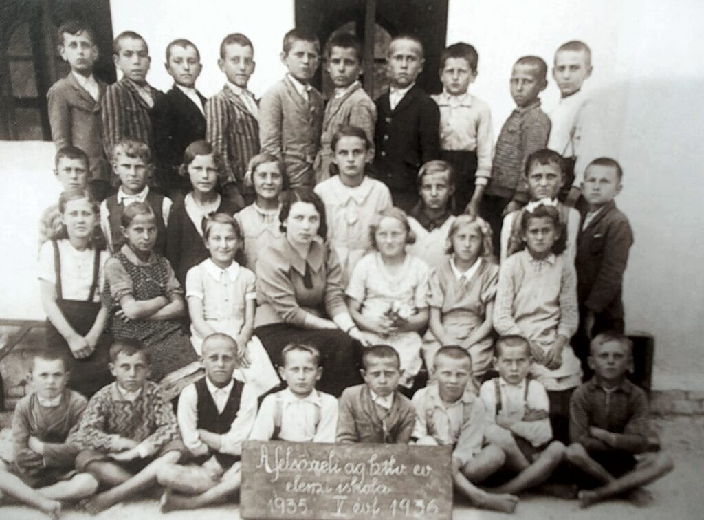 Az 1935/36-os V. évfolyam látható a képen, középen a tanítónő, Vaskó Lenke, aki tíz évet tanított Felsőszeliben. Tanítványai szerették és tisztelték. A „mezítlábasok”, ahogy Kodály is nevezte régi pajtásait, itt is láthatóak.