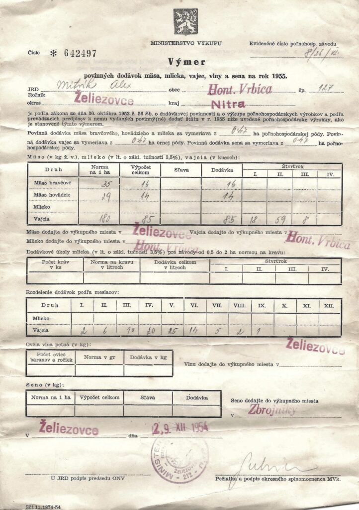 a hús, tej, tojás, gyapjú, széna beszolgáltatásáról, 1955-ben