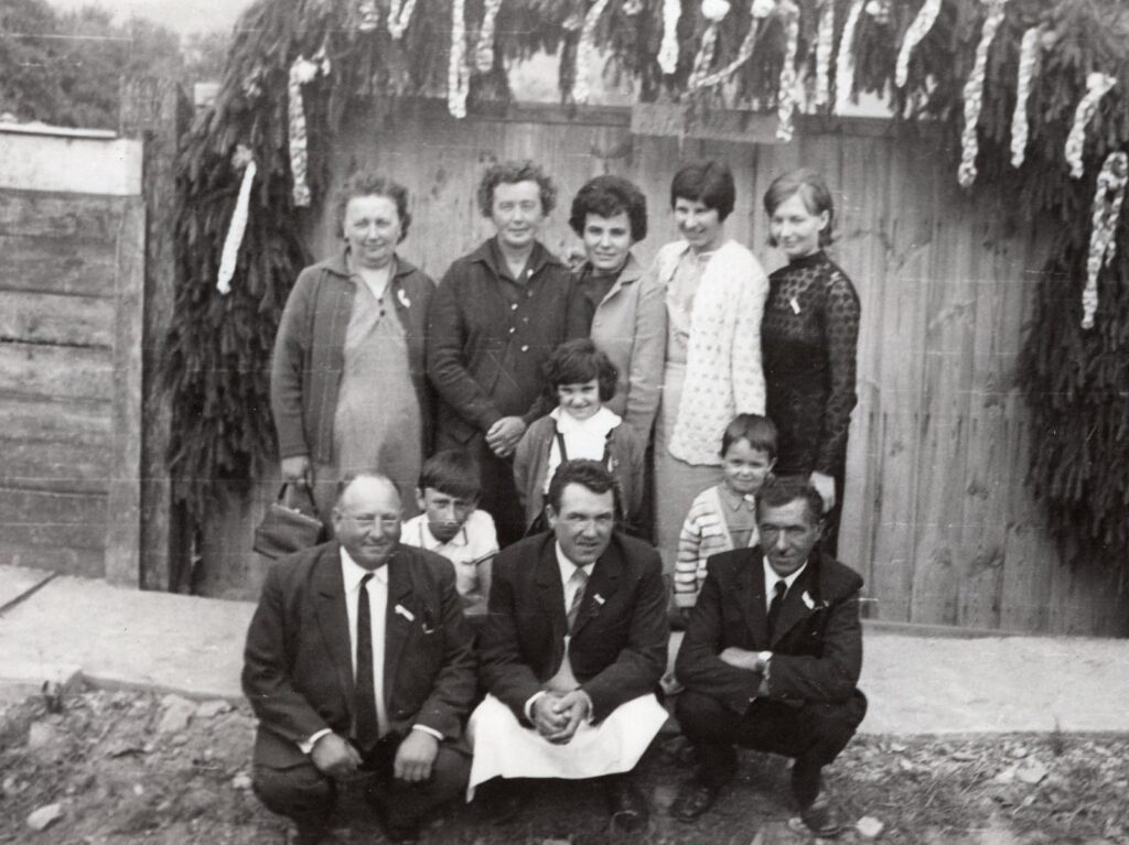 A házigazda és rokonsága várja a vendégeket a lagzis házhoz, valamikor az 1950-es évek második felében.