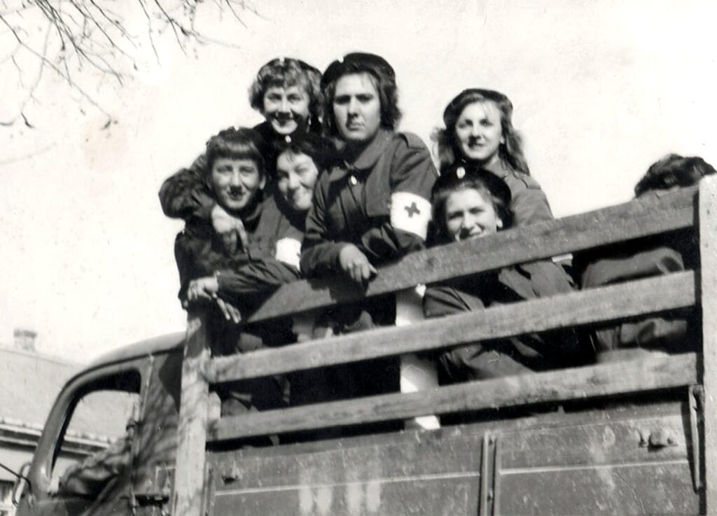 A teherautó platóján a vágai Vöröskereszt tagjai.