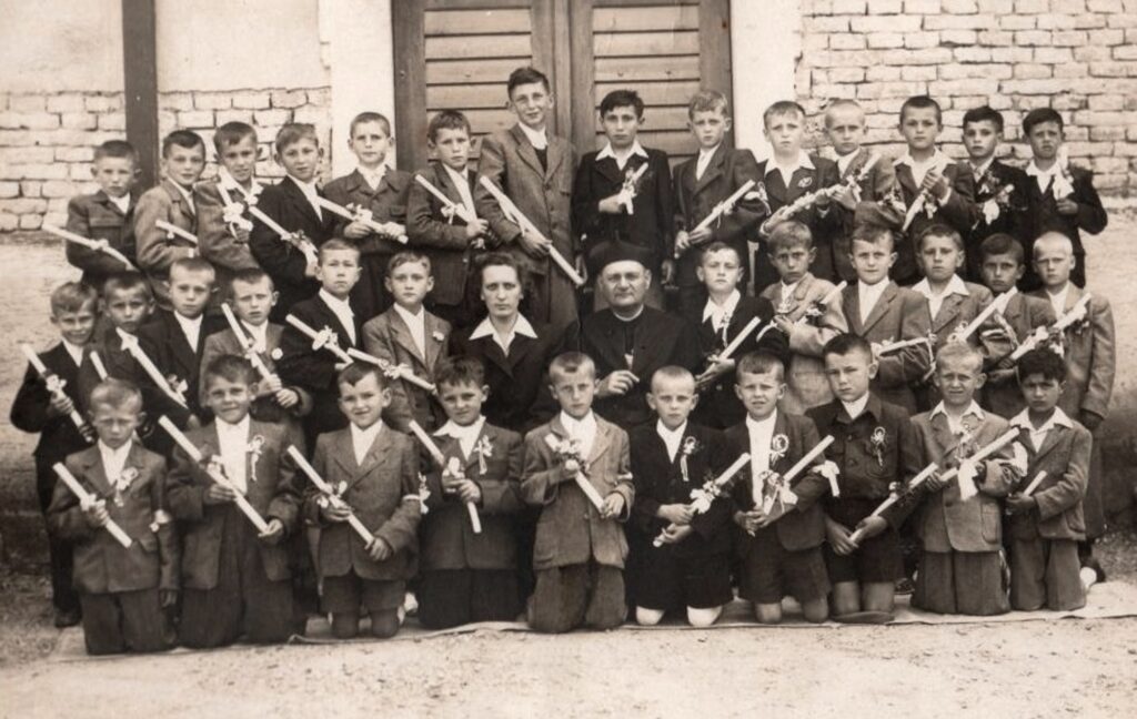 Középső sor balról jobbra: Farkas Gyula, Felix Sándor, Dubnicska Tibor, Renács Margit, Wilde József (plébános), Nagy Sándor, Czakó Mihály, Sztoklasz József, Forró Antal, Szabó Gyula.