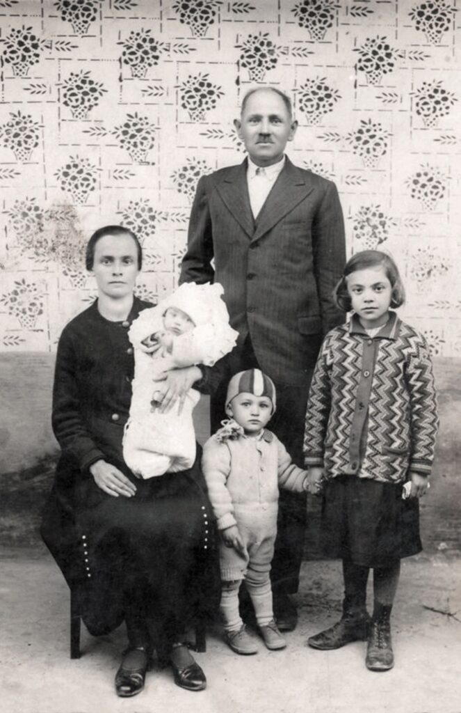 A vágai Zsigó család: Zsigó Mária (született Józsa), Juliska (kisbaba), Tibor (kisfiú) Zsigó Antal, Zsigó Erzsébet.