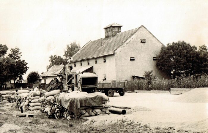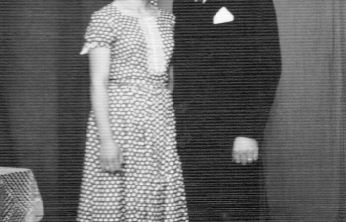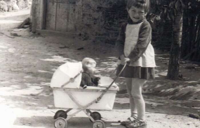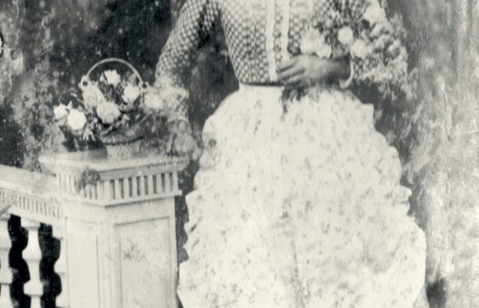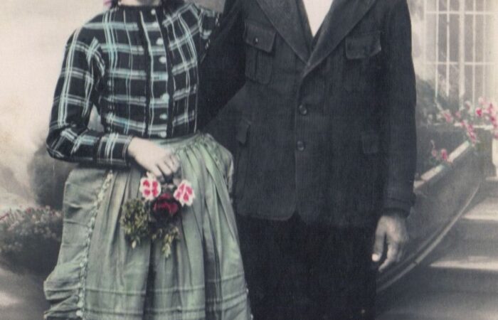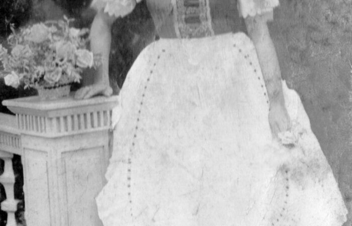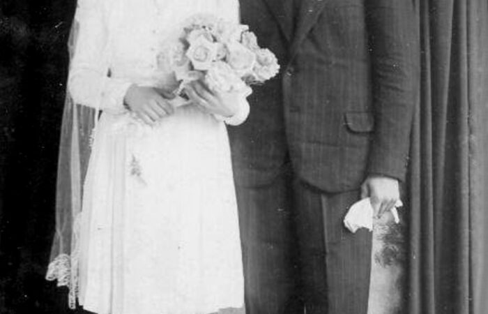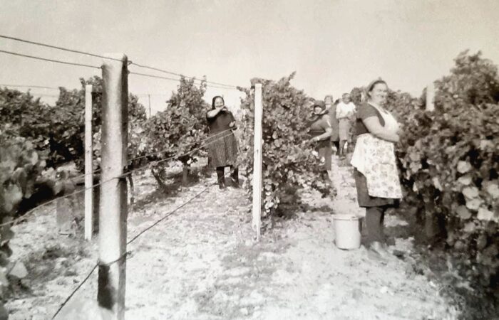 A kép kb. 1960-ban készült. A Madaron élő Varga Albertné Szitás Erzsébet varrottas készítésével, azsúrozással és toledós terítők varrásával kereste meg a házhozvalót. A terítőket Prágába járt fel eladni. A kép is ott készült, egy sikeres eladás után.