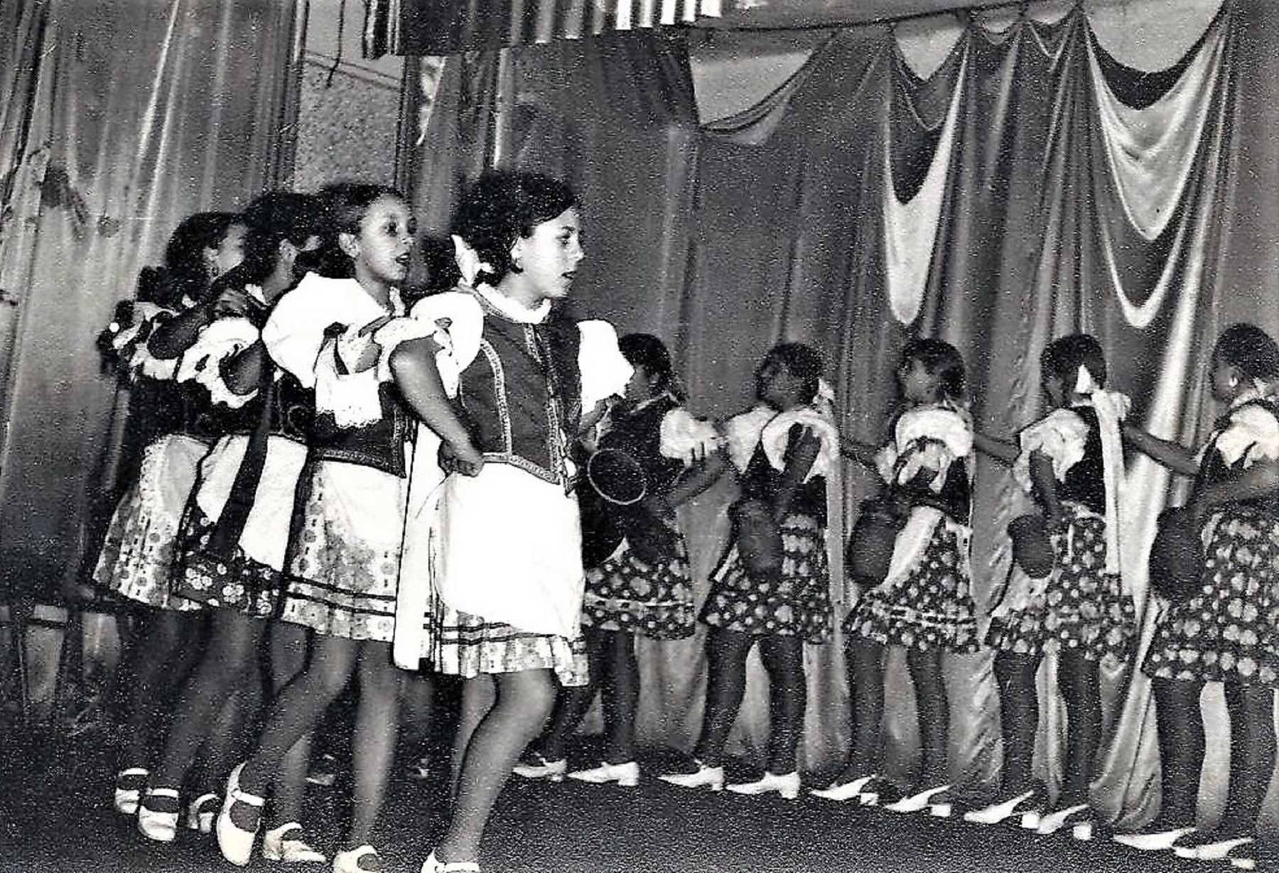 Néptáncegyüttes 1970-ben. A képen látható: Balogh Éva, Smajda Margit, Dremmel Katalin, Tamás Júlia, Dupáj Ilona, Czap Éva, Gyüre Júlia, Kovács Apollónia, Pasztirák Erika, Nagy Ilona, Veszeli és Király István.