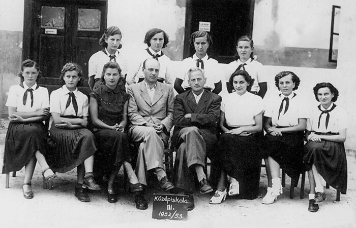 Vága, 1960-as évek végén Hátsó sor, balról jobbra: Kiss Jolán (nevelőnő), Zsigó Róbert, Kozma Mária, Gajarská Iveta, Fandelová Ružena, Hulák Magdaléna, Adamkó István, Kamenár Erzsébet (nevelőnő). Alattuk állnak, balról jobbra: Kozma Éva, Forró Zoltán, Kotrba Katalin, Takács Róbert, Kubíková Marta, Szabó György, Sandula György. Alattuk állnak, balról jobbra: Farkas Ági, Zsigó Ružena, Karácsony Tibor, Kamenár...