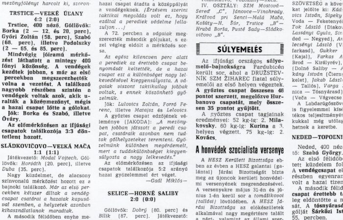 Kép a régi kultúrházban készült 1970-ben. A képen a Polgári ügyek testületének tagjai láthatók: az akkori HNB titkára Varjú Károly, HNB elnöke Bréda Vince, valamint a testület tagjai: Halámik Ferenc, Barcsek Magdolna, Bréda József, Orosz Ferencné, Oszlik Mária, Kurcz Ilonka, Halámik Ferencné, Gléba Lujza, Bréda Erzsébet. A testület feladatai közé tartozott többek közt a jubilánsokról...