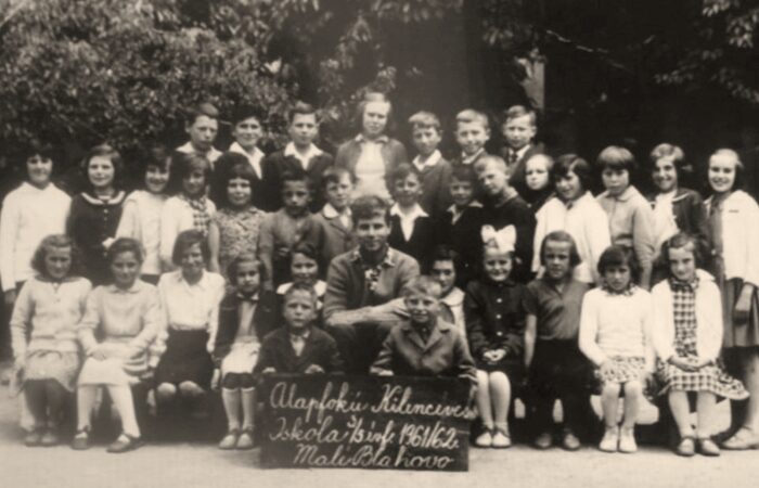 Vága, 1990. évben Községházán, az 1940-ben születtek. Állnak, balról jobbra: Ecseri Margit (született: Mészáros), Forró István, Kiss Jolán (született: Forró), Bakó Ernő, Somogyi Viola (született: Kotrba), Kamenár György, ?, Hanusz Ferenc, Kubica István, Kamenár Margit, Recht Miklós és a felesége, Rechtné.