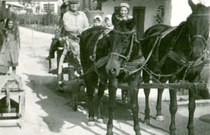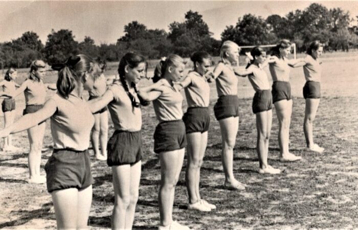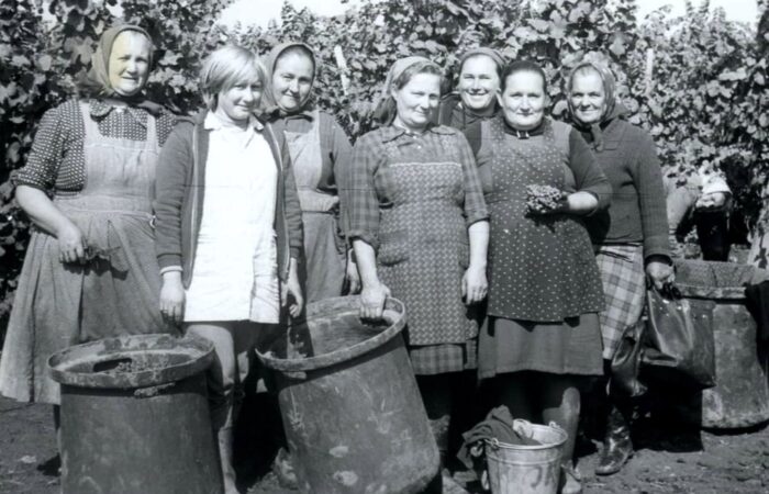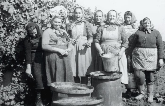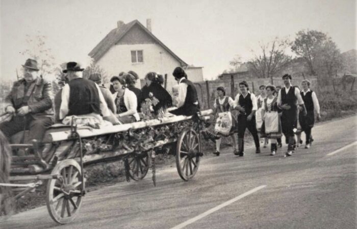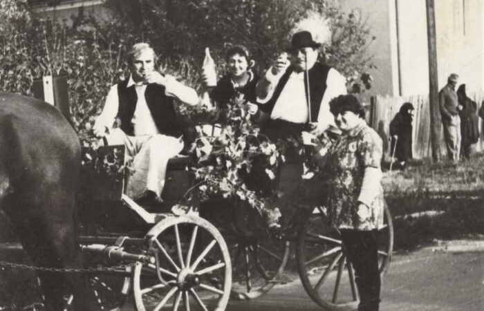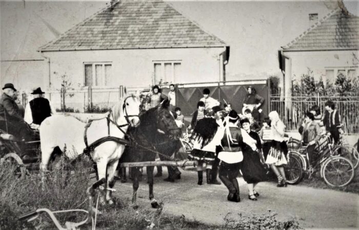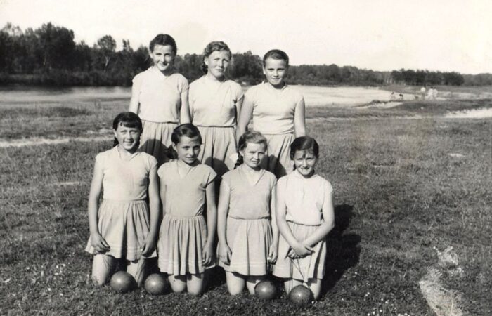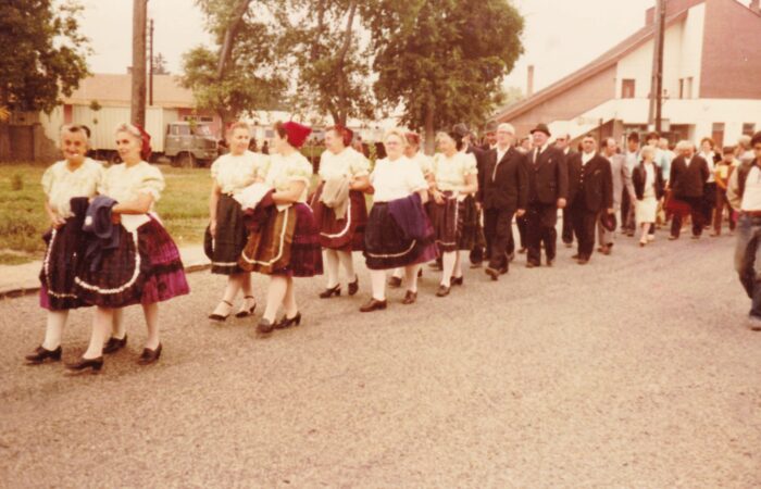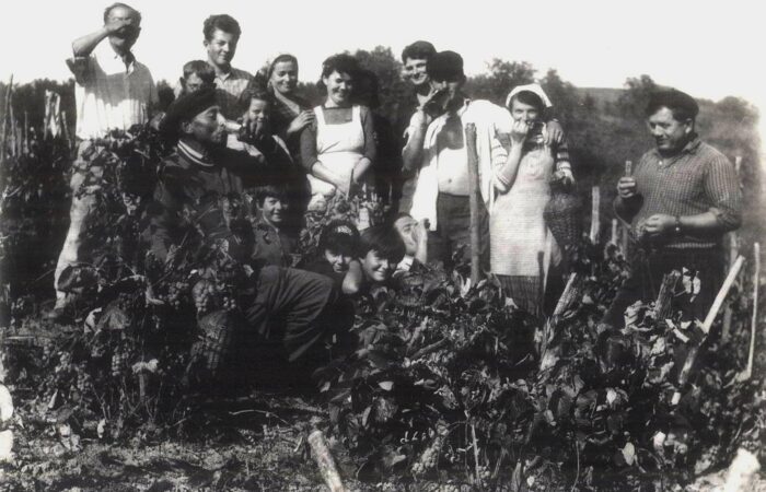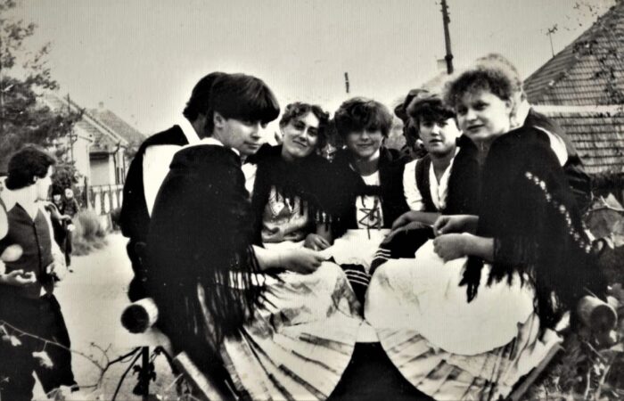 Vága, 1950-es években Lányok állnak, balról jobbra: Szabó Irén, Polakovics Júlia (Jalsovszkyné), Adamkó Margit (Tyukosné). Térden állnak, balról jobbra: Zsigó Magda (Bkahutané), Kamenár Katalin, Majerník Margit, Éliás Erzsébet (Józsáné). Adamkó Margitot Peredre sodorta az élet, Zsigó Magdát Csehországba, Kamenár Katalint Galántára, Majerník Margitot pedig Nagymácsédra.