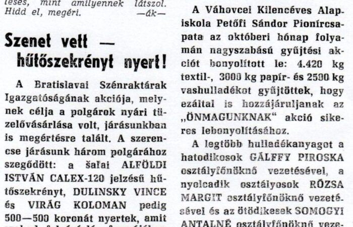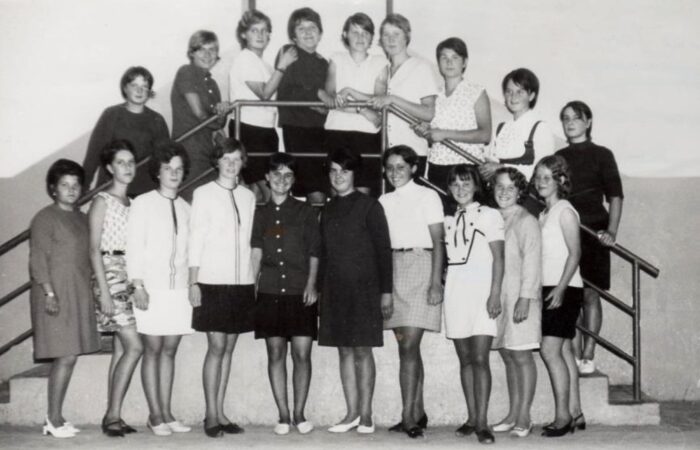 Vága, 1968. esztendőben Hátsó sor, balról jobbra: Lulovics Márta (Silná), Adamkó Anna (Kubicáné), Sandula Beáta, Forró Márta, Józsa Veronika (Chmelárné), Zsigó Jolán (Mikusné), Forgács Magda (Zsigóné), Csomor Mária, Forró Anna. Első sor, balról jobbra: Oláh Veronika (Síposné), Takács Rozália (Knézelné), Nyári Éva (Szabóné), Kozmér Mária (Adamkóné), Hyža Gabriella (Garayné), Podhorányi Helena, Adamkó Magda (Vargáné), Puskás...